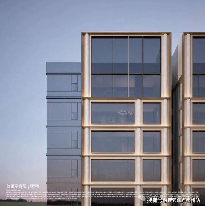 建建立面,从入口处的月光米黄石材景墙,南向立面的圆弧形柱状布局材料为仿石铝板和仿铜铝板!